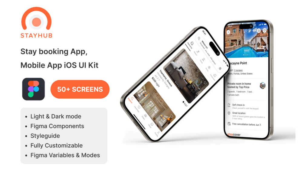 Stayhub UI Kit is a versatile Figma resource designed for iOS mobile interfaces, bringing a curated collection of components and style guide.